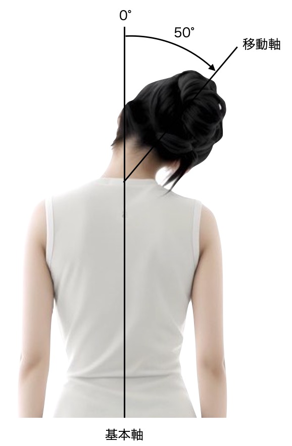 | 0-50° | 第7頚椎棘突起と第1仙椎の棘突起を結ぶ線 | 頭頂と第7頚椎棘突起を結ぶ線 | 体幹の背面で行う 腰かけ座位とする |
