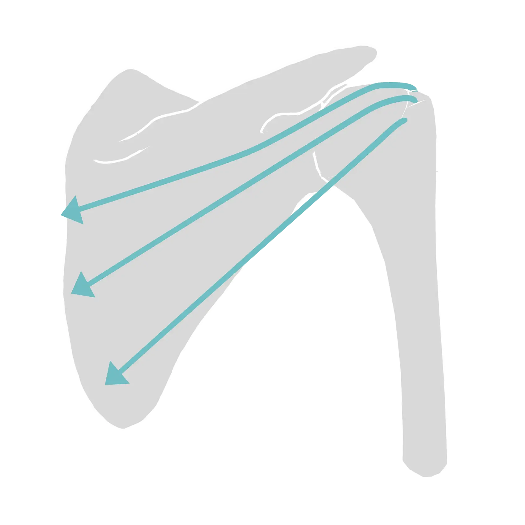 | 備考 | 棘下筋は肩関節の外旋に重要な役割を果たしており,ローテーターカフ/回旋筋腱板(Rotator cuff)の一部として肩の安定性にも寄与している.ローテーターカフを構成するのは主に棘上筋・棘下筋・小円筋・肩甲下筋の腱である. |