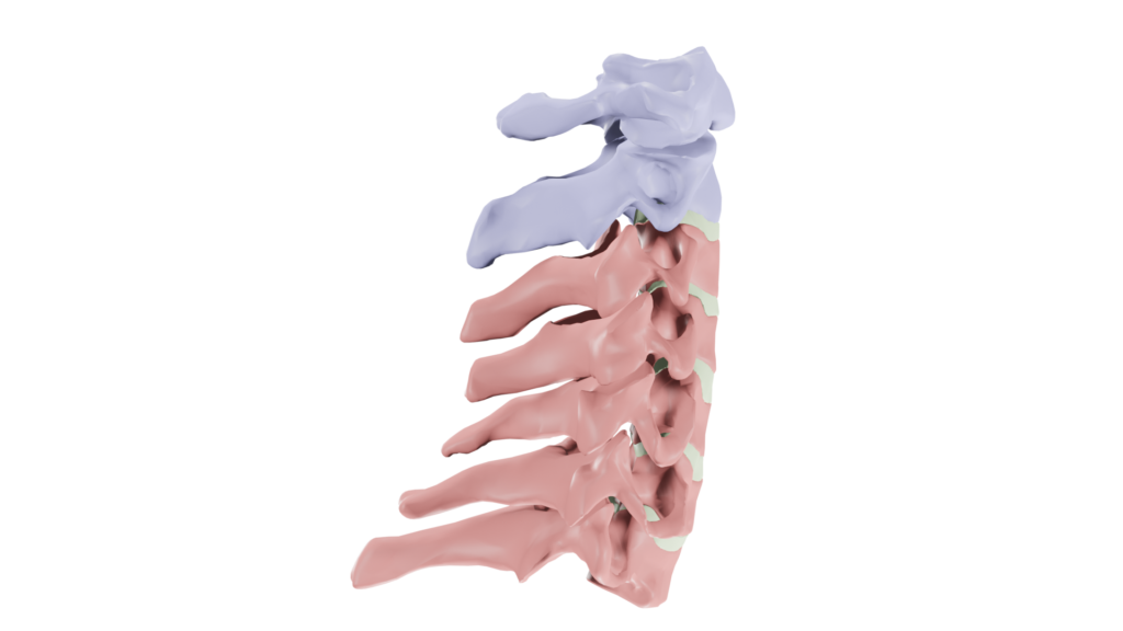 頸椎は特徴の違いから上部頸椎(Superior Cervical Spine)と下部頸椎(Inferior Cervical Spine)に分けられます。