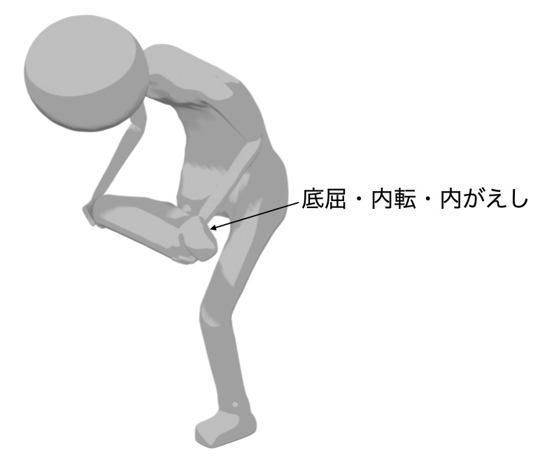 ただし、母趾・趾に関しては、足底への動きが屈曲、足背への動きが伸展である。